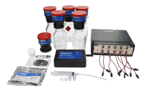ANKOM RF Gas Production System adalah sebuah sistem otomatis nirkabel yang dirancang untuk mengukur dan memantau produksi gas secara real-time dalam proses fermentasi, baik aerobik maupun anaerobik. Sistem ini menggunakan modul radio frekuensi (RF) untuk mengukur tekanan dan suhu di dalam botol reaksi, kemudian mengirimkan data ini ke komputer untuk analisis. Data yang dikumpulkan digunakan untuk menghitung volume gas total yang dihasilkan, yang kemudian dapat digunakan dalam berbagai studi seperti pencernaan ruminansia, pengolahan limbah, produksi biomassa, hingga aktivitas ragi dan adonan.