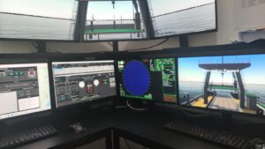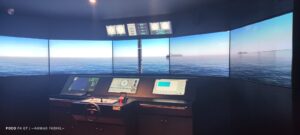 Ruang simulasi dan navigasi kapal, juga dikenal sebagai Bridge Simulator atau Full Mission Ship Bridge Simulator (FMSS), adalah fasilitas pelatihan yang menggunakan sistem komputer, layar, dan perangkat keras canggih untuk meniru kondisi anjungan kapal sungguhan, memungkinkan taruna dan nakhoda untuk berlatih navigasi, pengendalian kapal, penanganan radar, dan komunikasi di berbagai kondisi cuaca dan lalu lintas yang realistis, sehingga meningkatkan pemahaman dan keterampilan mereka sebelum berlayar di laut sebenarnya.